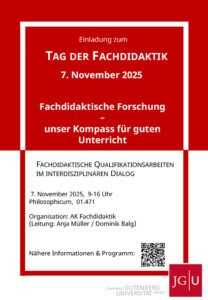 - Tag der Fachdidaktik an der JGU: Fachdidaktische Qualifikationsarbeiten im interdisziplinären Dialog